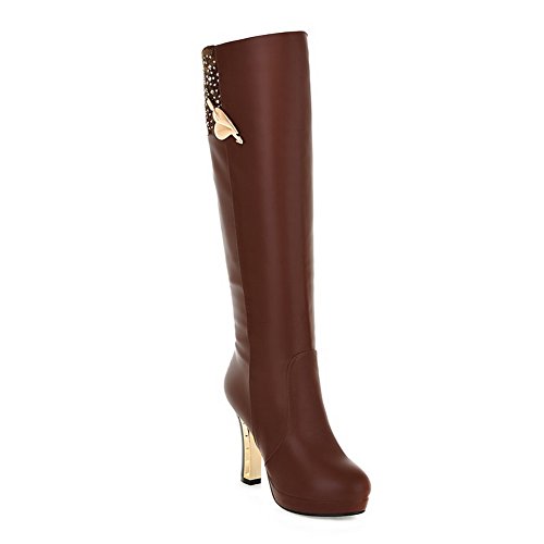 BalaMasa Ladies Chunky Heels Glass Diamond Metal Ornament Brown Soft Material Boots - 4.5 B(M) US