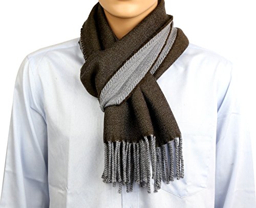 Men's Neck Scarf 100% Wool Soft Light Warm 11 x 70 Inch,170 Grams,Light Brown & Grey