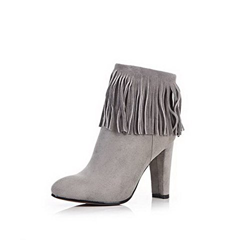 AmoonyFashion Women's Round-Toe Closed-Toe High-Heels Boots with Slipping Sole and Thread, Gray, 35