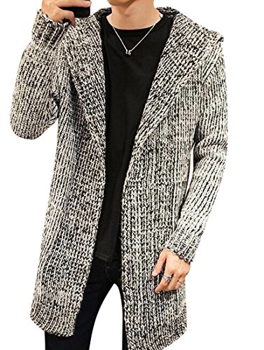 ARTFFEL-Men Winter Hooded Open Front Loose Knitted Cardigan Sweater Overcoat Grey L