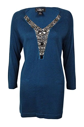 August Silk Women's Beaded-Neck Knit Sweater (M, Navy)