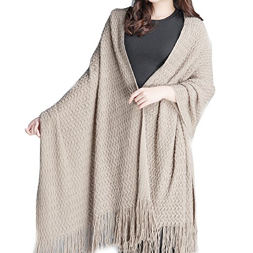 Battilo Solid Color Blanket Scarf with Tassel Office Air Conditioning Shawl Long Photographic Blanket (Beige) is one of the