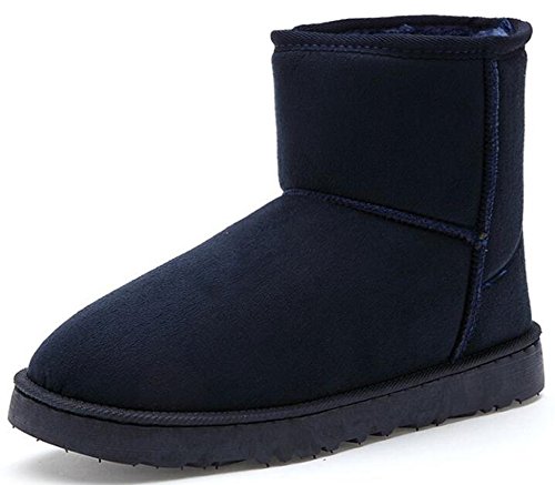 IDIFU Women's Men's Unisex Solid Fleece Lined Flat Winter Boots Ankle High Snow Booties (Blue, 7.5 men D(M) US) is one of the