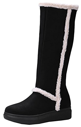 SHOWHOW Women's Warm Frosted Faux Fur Lined Side Zipper Mid Calf Boots Black 8 B(M) US