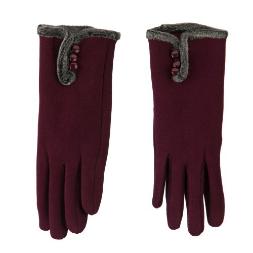 Women's Faux Fur Trim Texting Glove - Burgundy OSFM