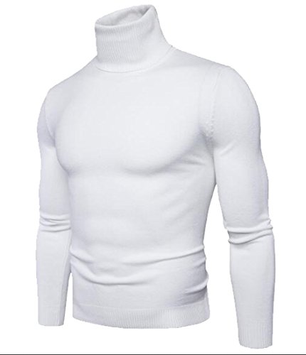 YUNY Mens Winter Long Sleeve Solid Turtleneck Slim Fit Pullover Thermal Sweater White S