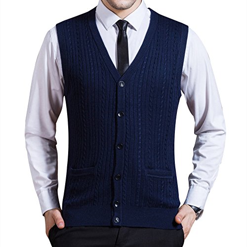 Zicac Men's Business Solid Button Knitwear Sweater Vest Sleeveless Knitted Waistcoat (L, Blue) is one of the Winter Equipments at the market. This Most Favourite item delivers to you to please your needs.