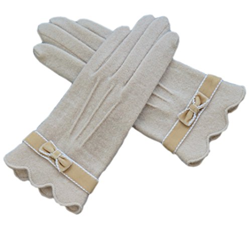 Classic Winter Warm Wool Cold Weather Glove for Women with Touch Screen Function, Bow-knot, White is one of the