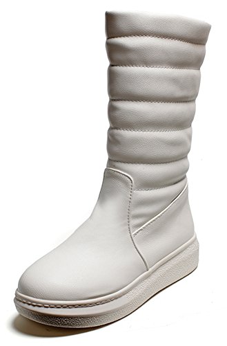 IDIFU Women's Warm Heighten Flat Mid Calf Snow Boots White 8.5 B(M) US