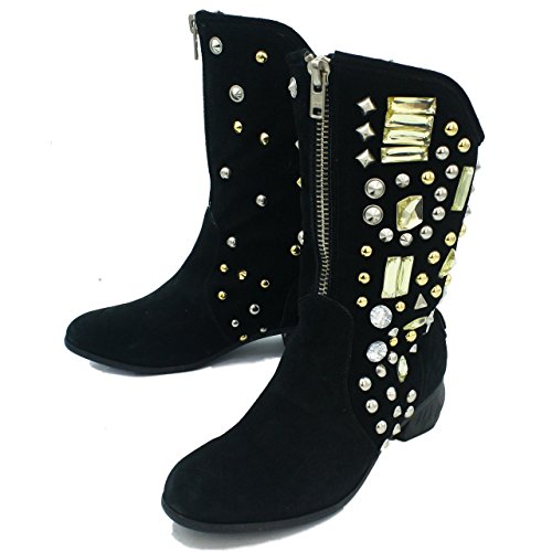 - Embellished in gold and silver tone metal studs and reinstones in different shapes