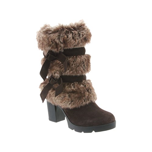 Add some sass to your style with a 7.5 inch suede and faux rabbit fur shaft boots with decorative bow accents. They are elevated on a 3 inch block heel with a flexible and durable rubber outsole. Bridget boots are a great addition to your winter wardrobe. They also feature sheepskin footbed and wool blend lining. Material: Suede, Faux Rabbit Fur, Sheepskin Fur, Rubber.