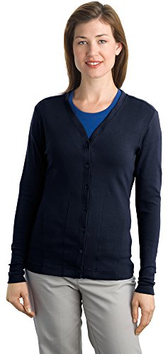 Port Authority Ladies Modern Stretch Cotton Cardigan, True Navy, XXX-Large