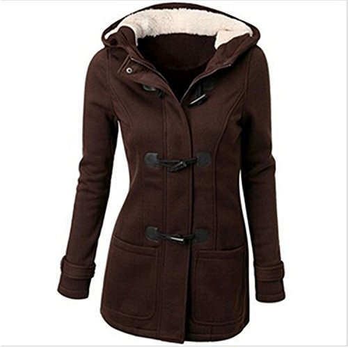 Penin New Fashion Autumn Winter Women Wool Blend Jacket Hooded Zipper Coat Horn Button Solid Plus Size Clothes For Female Dark Brown L is one of the