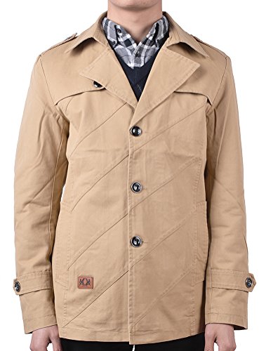 QZUnique Men's Casual Slim Fit Turn Down Collar Jacket Light Trench Coat Khaki 3XL