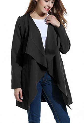 ACEVOG Women's Asymmetrical Winter Long Trench Jackets Cardigan (Medium, Black)