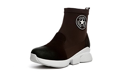 AmoonyFashion Women's Round Toe Closed Toe Low Heels Boots with Thread and Platform, Brown, 35