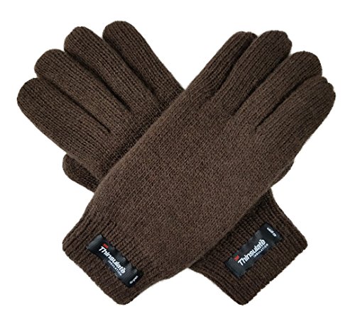 Bruceriver Women's Pure Wool Knitted Gloves with Thinsulate Lining and Rib Cuff Size XL (Brown)