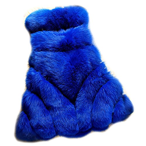 D-COOL Women's Vintage Faux Fur Sleeveless Vest Coat Jacket Waistcoat Outwear (S, BLUE)