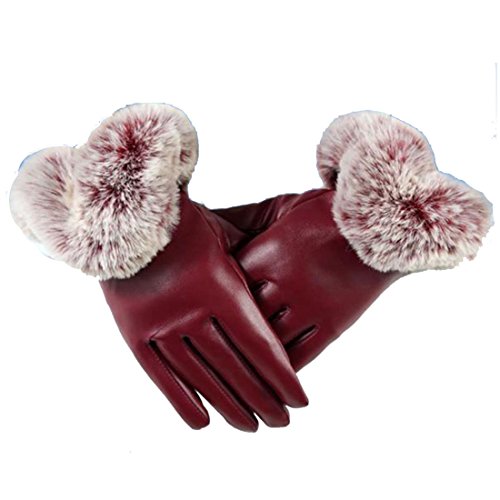 Little Chair Women Touch Screen Winter Warm Windproof Gloves Faux Leather Mitten (Wine Red)