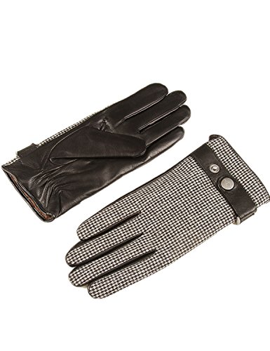 Only Faith Men's Winter Sheepskin Leather Driving Gloves (XL(hand girth: 9.29"), black houndstooth)