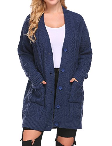 Unibelle Women's Cable Twist School Wear Boyfriend Pocket Knit Button Cardigan (Navy, XL)