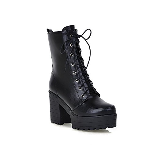 BalaMasa Womens Bandage Platform Cold-Weather Black Imitated Leather Boots - 6 B(M) US