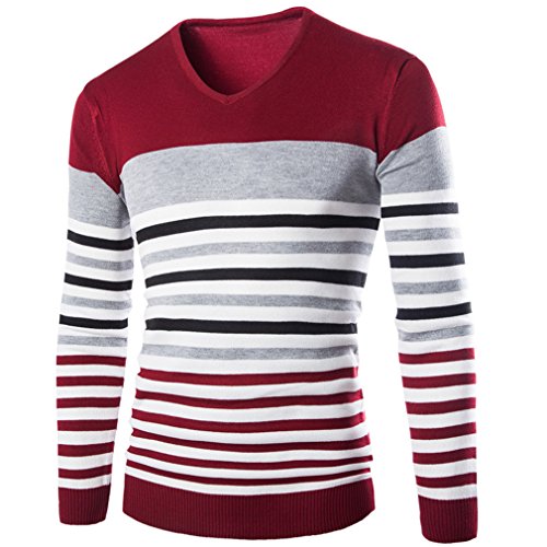 YanCui@ Men's Daily Casual Autumn Winter Color Block Stripes V-neck Knitted Sweater ,Red,M is one of the Winter Gears in the marketplace. This Great goods provides for you to please your wants.