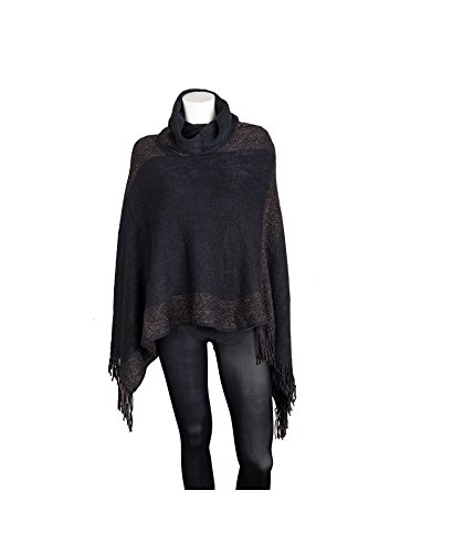 Sportoli Women's Thick Warm Knitted Winter Shawl Cape Poncho Wrap with Cowl Neck - Black (One Size)