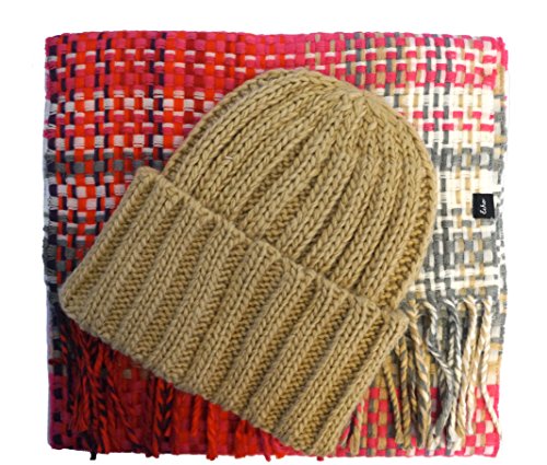 Echo Women's Hat and Scarf 2 Piece Set will keep you warm this winter season. It is also great for gift giving season. Comes nicely wrapped together in a ribbon. The soft material will keep you cozy. Made of 100% Acrylic. Scarf: Multi Woven Design. Matching Hat: Ribbed Knit Design. One Size Fits Most.