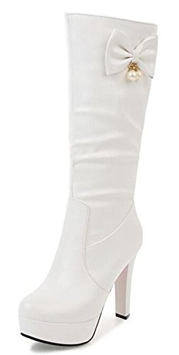 IDIFU Women's Sweet Bows Platform High Block Heels Under Knee High Riding Boots (White, 10.5 B(M) US) is one of the
