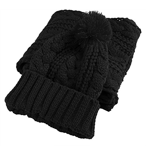 POGTMM Women's Fashion Winter Warm Knitted Hat and Scarf Set Skullcaps (One Size, Black#)